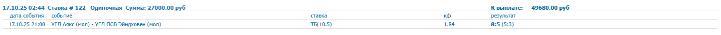 Футбол Чемпионат Нидерландов 1й дивизион \ Угловые : УГЛ Аякс (мол) - УГЛ ПСВ Эйндховен (мол) ТБ 10.5