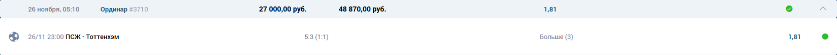 Футбол Лига Чемпионов \ ПСЖ - Тоттенхэм ТБ 2.5