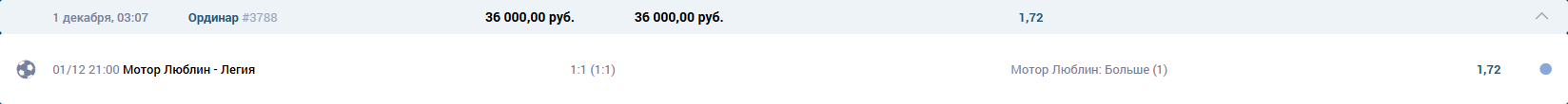 Футбол Чемпионат Польши \ Мотор Люблин - Легия : Мотор Люблин забьёт больше (1)